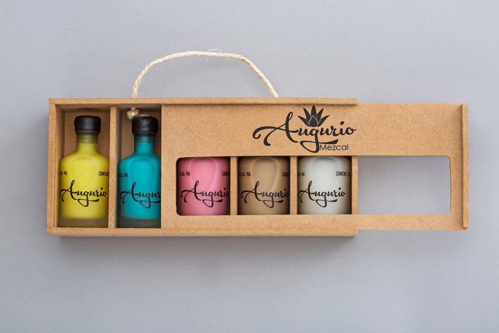 Cremas de mezcal de 5 sabores en caja de madera (50 ml c/u):